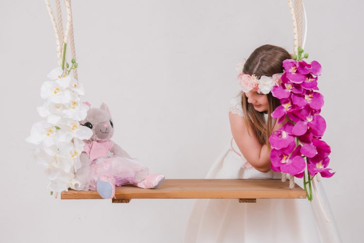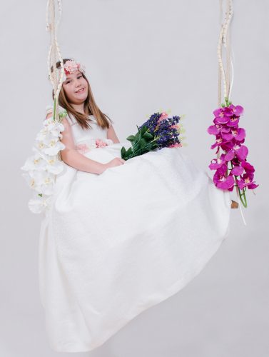 Alba va a comulgar dentro de unas semanas, y quería un recuerdo especial de su primera comunión. Ella misma decidió que quería unas fotos vestida de comunión, y las quería en un estudio de fotografía, pero dejó bien claro algo… quería que sus fotos fueran diferentes, originales y divertidas!